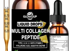 Multi Collagen Peptides Liquid Drops for Women & Men-Type I, II,...