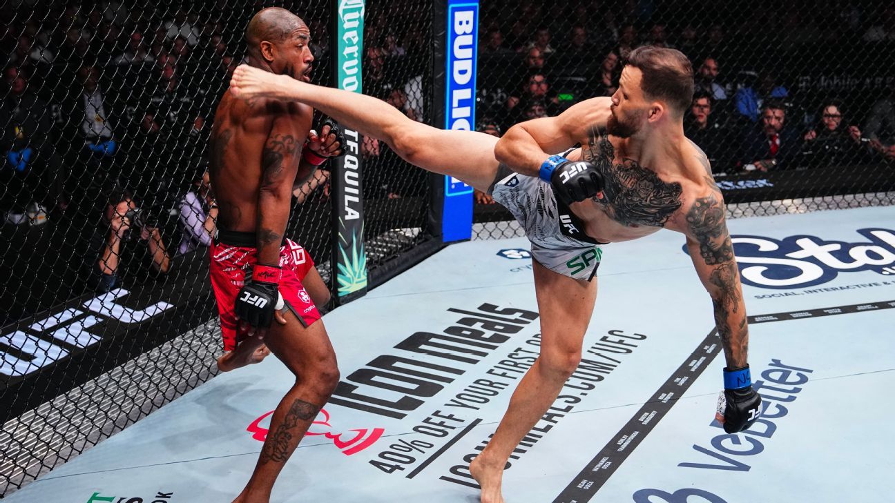 It was toe-to-toe the whole way, and Van was especially accurate with his attacks, landing 204 of his 305 significant strike attempts (66%). Royval connected with 215, making their combined total 419 — the most ever in a three-round UFC fight and the third-most landed in any fight inside the Octagon. Van earned a unanimous decision to win an all-action fight that was impossible to match. — Wagenheim