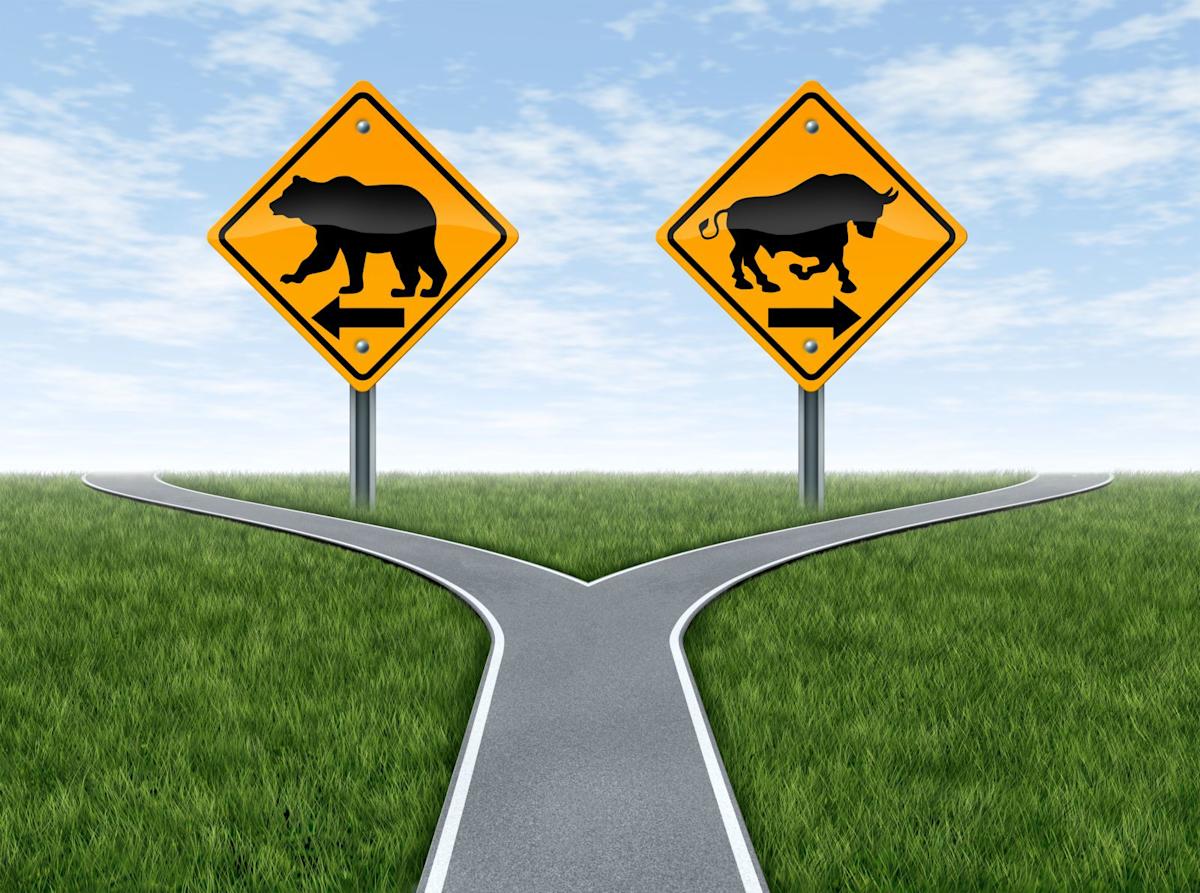 Bull vs bear fork in the road by Lightspring via Shutterstock