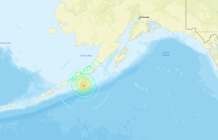 The 7.3-magnitude earthquake struck at 12:37 p.m. local time, just south of Sand Point, a community of about 580 people on Popof Island, in the Aleutian chain, according to the Alaska Earthquake Center. The first waves were projected to land there, but the state’s emergency management division said an hour after the quake that it had received no reports of damage.