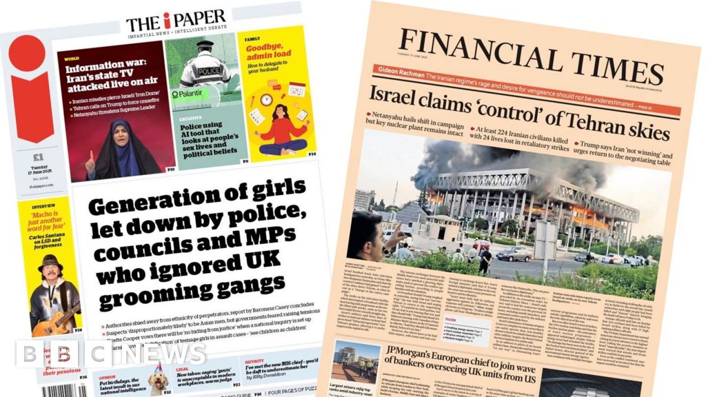 An audit led by Baroness Louise Casey into grooming gangs dominates Tuesday’s papers. The i newspaper’s headline says a “generation of girls” were “let down” by police, councils and MPs. It quotes the report, which found authorities “shied away from the ethnicity of perpetrators” for fear of “raising tensions”.