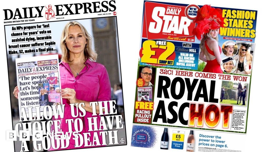 The Daily Mail follows with an “emotional appeal” from shadow justice secretary Robert Jenrick, who says he will not support the assisted dying bill. Writing in the Mail, Jenrick says his grandmother Dorothy brought joy to the family as she “defied a terminal diagnosis for nearly decade” and the prospect of legalising assisted dying “fills him with dread”. Elsewhere, the absence of Catherine, Princess of Wales, at Royal Ascot on Thursday is also prominent, as the paper hints at a “tell-tale detail” that was missed.