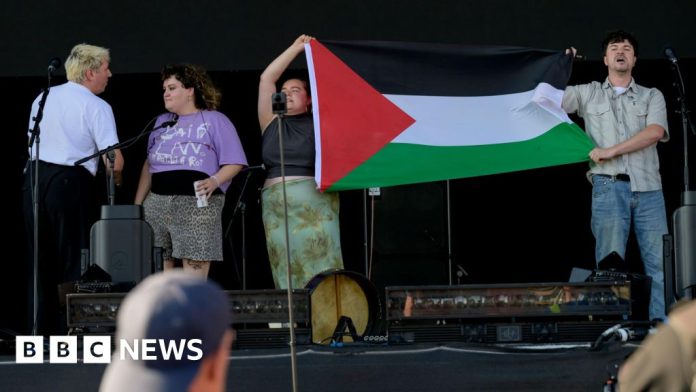 “We absolutely support the right of artists to freely express their views from the stage, within the law and the inclusive nature of the event. Our policy of not allowing flags of any kind, which has been in place for many years for wider event management and safety reasons, is not meant to compromise that right.