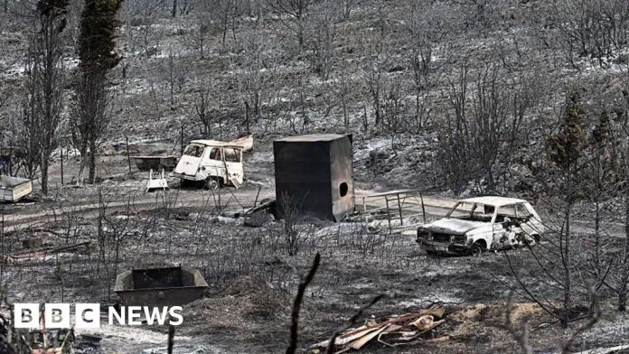 Getty ImagesThe fire advanced rapidly, driven by strong winds, dry vegetation and hot summer weather, officials said.