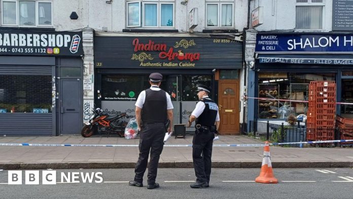 Three women and two men were taken to hospital when a blaze ripped through the venue in Woodford Avenue, Gants Hill, on Friday evening.