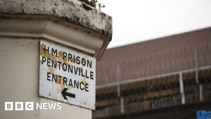 PA Media A sign on a column saying H.M. Prison Pentonville, and underneath the words Entrance and an arrow pointing to the left. PA Media