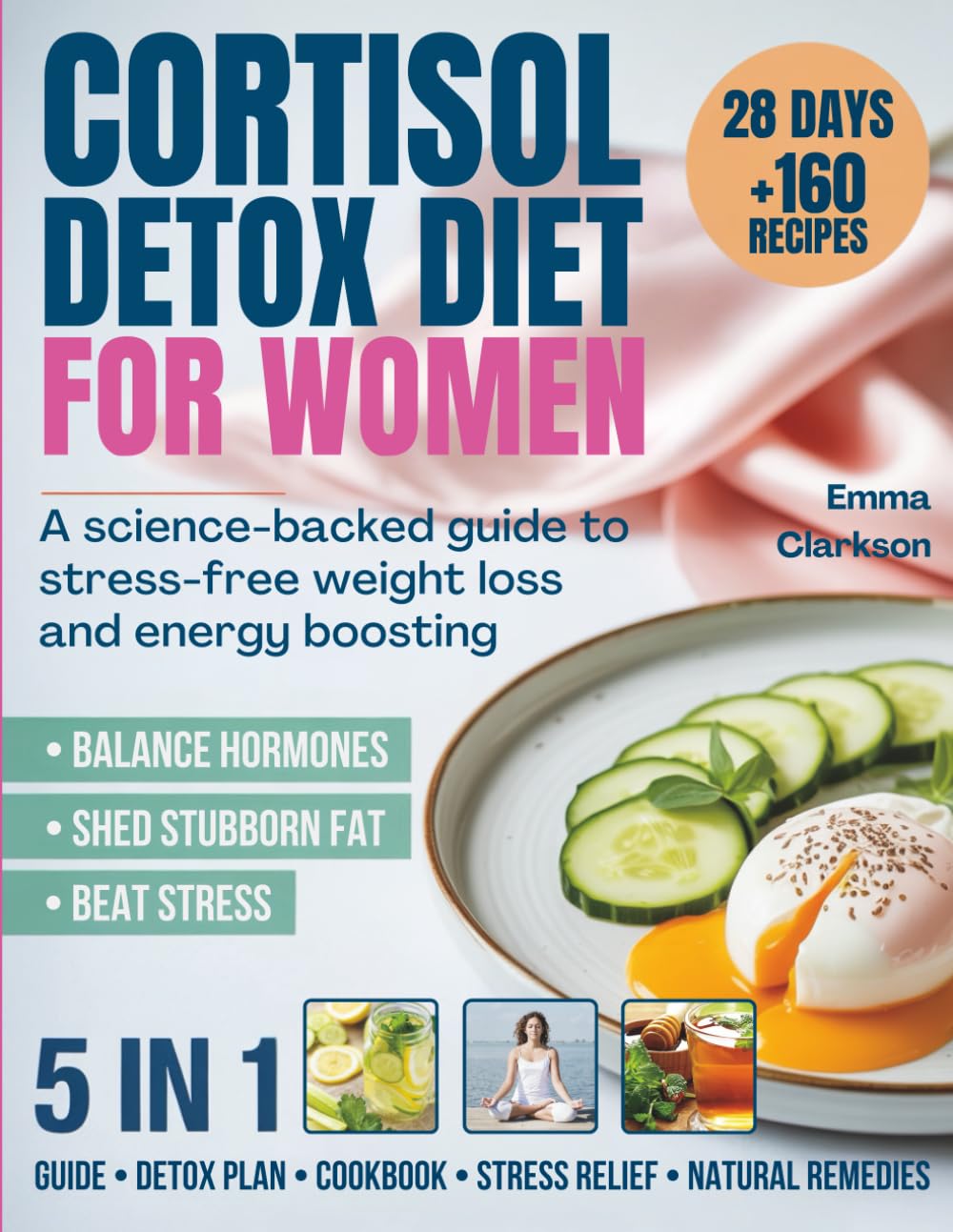 In Cortisol Detox Diet for Women, wellness expert Emma Clarkson delivers a complete cortisol reset system: a science-backed 28‑day plan that blends nutrition, stress-relief practices, gentle movement, sleep hygiene, and natural remedies—plus 160+ photo-backed recipes—to rebalance your hormones and restore your energy without extremes. ✨