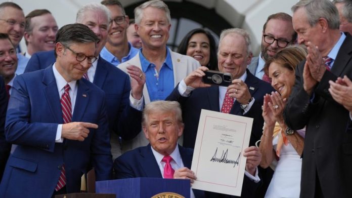 The massive spending package, which Trump dubbed “the big beautiful bill,” would bring new tax breaks for older adults and overtime workers. The legislation includes funding to help hire border patrol agents and officers. The package also reduces green energy tax credits while cutting Medicaid and food assistance programs.