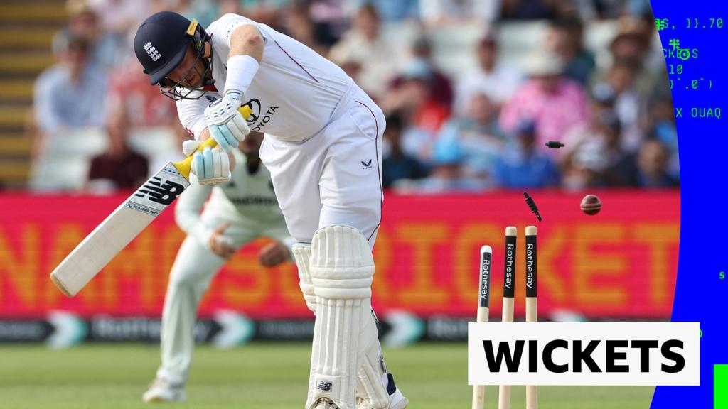 England lose Zak Crawley, Ben Duckett and Joe Root early on in their second innings to fall to 50-3 on day four, chasing 608 to win the second Test against India at Edgbaston.