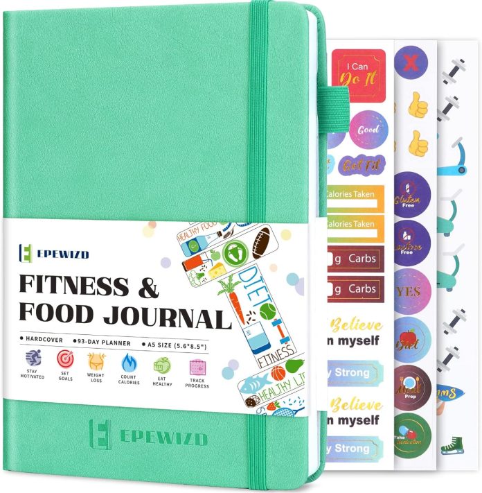 Premium Quality & Extra Stickers:This A5 size food and exercise journal perfect for your purse and gym bag. The cover of this food tracker and fitness journal is made by premium vegan leather, 100gsm paper has no bleed through and has sturdy binding and closure straps. It also come with an elastic pen loop, 3 bookmarks and a inner pocket for notes. In addition, the 3 bonus colorful stickers added to the wellness journal make you more motivated and a little obsessed with Journaling.