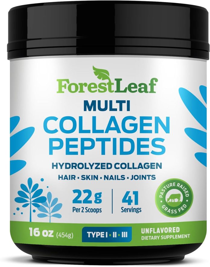 ForestLeaf Collagen Peptides Powder Unflavored – Hydrolyzed Grass Fed Keto Collagen Protein Powder Type 1, 2 & 3 – Vital Hair, Skin, Nails, Joints, Recovery, 11g Per Serving
