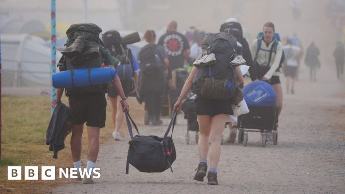 People were encouraged to leave the site between 00:00 and 06:00 BST to get ahead of the queues and avoid the heat, as temperatures are expected to reach up to 31C (88F).