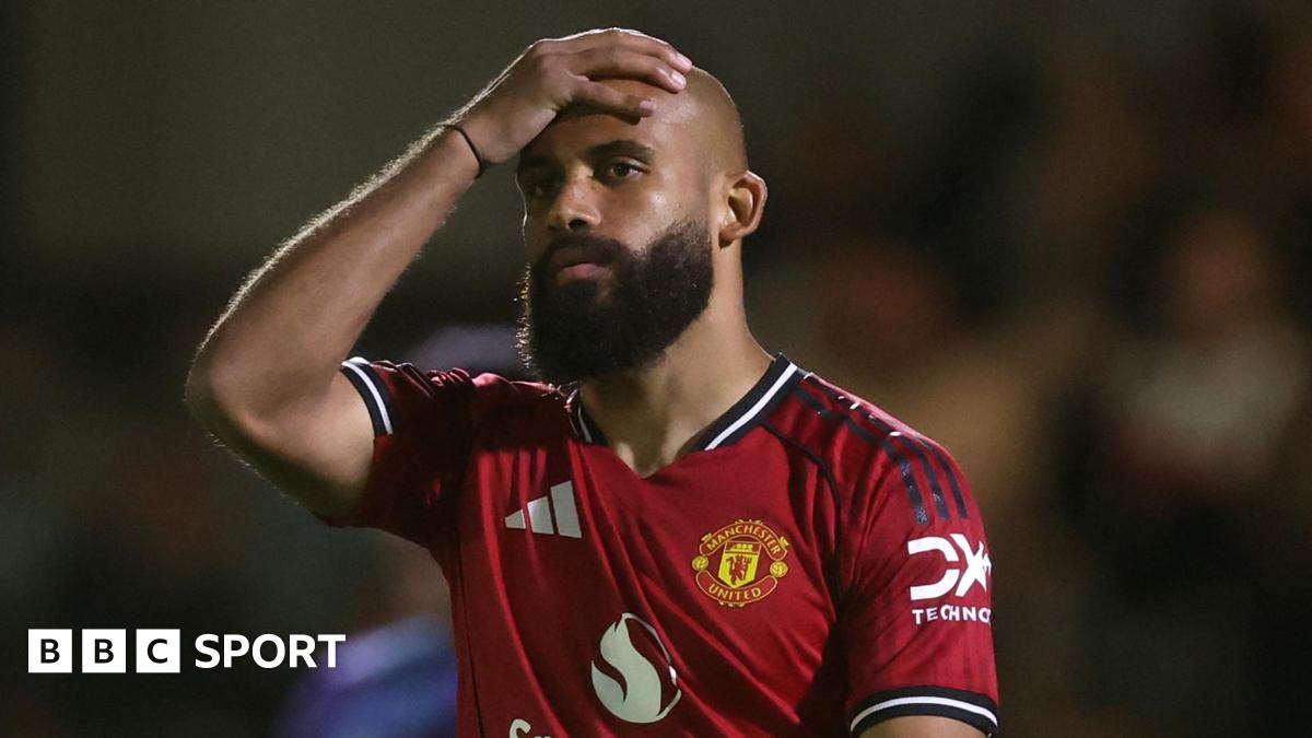 Bryan Mbeumo holds his hand to his head after Manchester United lose to GrimsbyImage source, Getty Images
