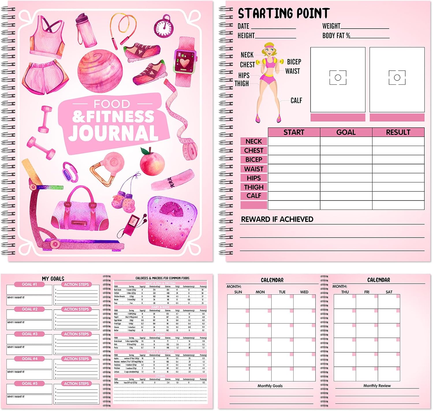 Food and Fitness Notebook: you will get 1pc food and fitness journal, measure about 8.5 x 11inches/22 x 28cm, 138 pages(64 sheets) in total, small enough to stow away, yet big enough to write in with no issues; Our workout journal notebook is not just a exercise planner, but also a wellness tracker, and it meticulously combines food, fitness, and wellness aspects to ensure you successfully embark on a healthy lifestyle