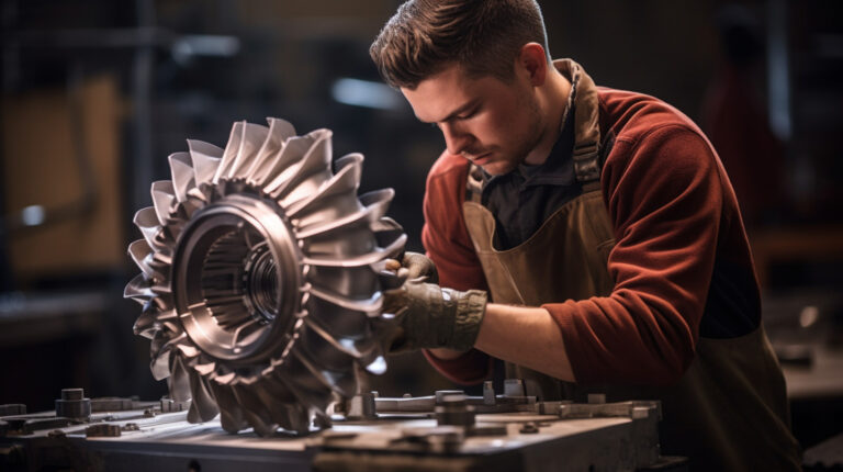 A machinist performing intricate work on a high-temperature resistant alloy for a jet engine.