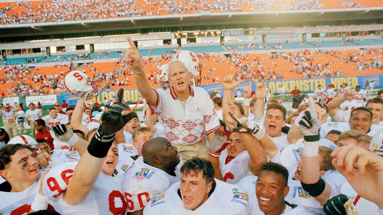 The first season was everything Stanford had dreamed — 10 wins, a top-10 ranking and national relevance restored. But the next two years were a grind. The roster turned over, Walsh’s recruits hadn’t quite matured, and the results reflected that: a 4-7 record in 1993, then 3-7-1 in 1994.
