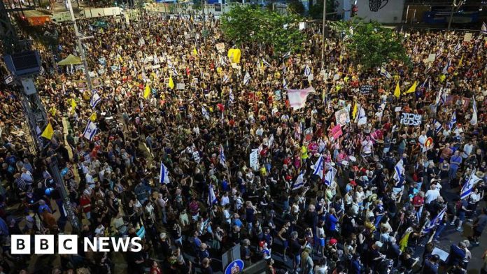 Israeli Prime Minister Benjamin Netanyahu criticised the protests, saying they would “harden Hamas’s stance” and would only slow down the release of the hostages.