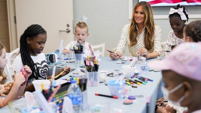 The first lady took part in crafts activities with the children and met privately with heart and kidney patients and their families, according to the White House. Trump also stopped by the Bunny Mellon Healing Garden, a space named after Rachel “Bunny” Mellon, a friend of first lady Jacqueline Kennedy.