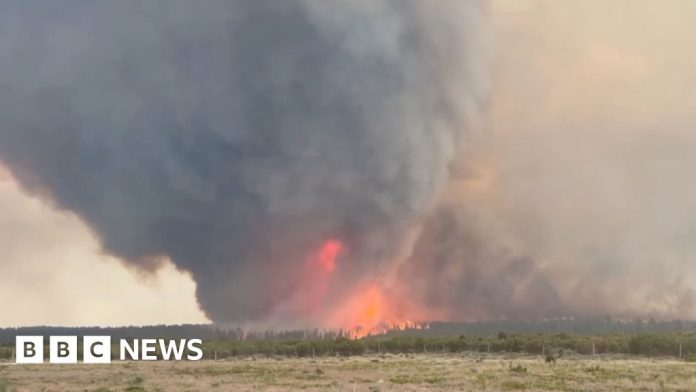 A firefighter has captured the moment a wildfire spun into a fire vortex on Saturday, 12 July near Old La Sal, Utah.
