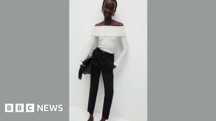The now-banned image previously on the retailer’s app and showed a model wearing a white off the shoulder top and slim-fit trousers as well as the pointed shoes in question.