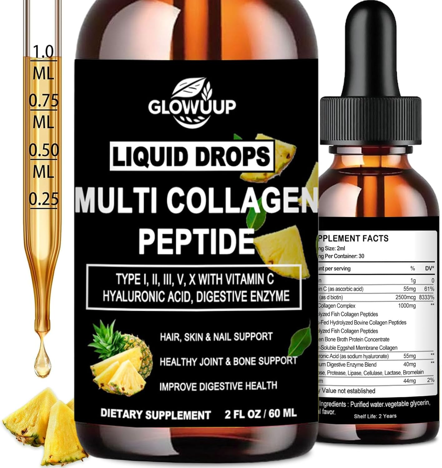 【Fast Absorption & Bioavailability Liquid Drops】 Experience superior absorption with our organic collagen peptides Liquid Drops -6x better nutrient uptake compared to traditional collagen formats like powders softgels gummies or capsules. Just take 2 ml multi collagen peptides liquid drink mix with water smooties, or directly sublingually. Our Pineapple flavor nutrition multi collagen protein drops designed to seamlessly fit into any lifestyle. Each 2 fl oz (60ml) bottle delivers 30 generous servings to to enjoy a smooth overall wellness at anytime, anywhere as part of your busy routine*