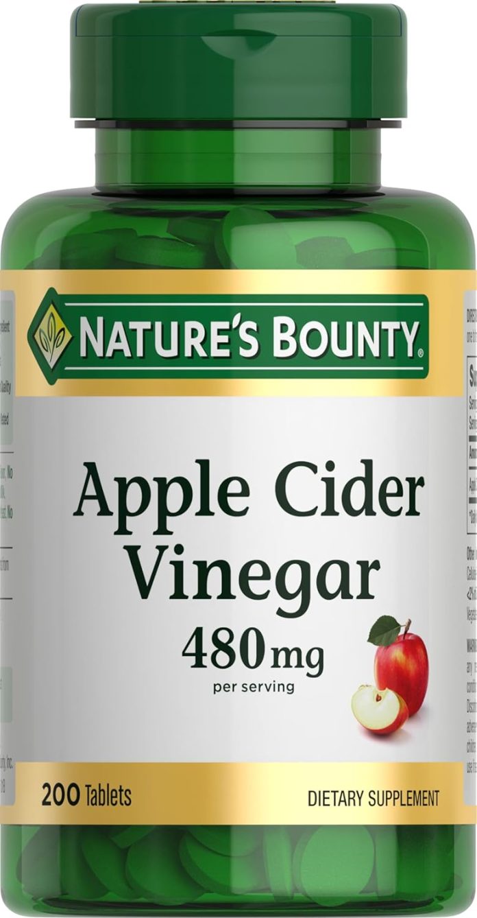 EASY WAY TO TAKE APPLE CIDER VINEGAR: Want to take apple cider vinegar without the strong sour taste. With Nature’s Bounty Apple Cider Vinegar tablets, you’ll get 480 mg of apple cider vinegar per serving—no more grimacing through an ACV drink