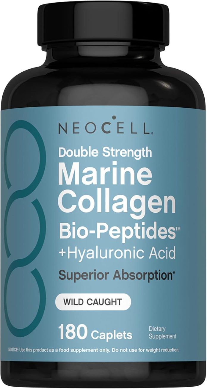 NeoCell Marine Collagen Peptides Supplement | 180 Caplets | with Hyaluronic Acid | Double Strength Formula | Nails, Skin, & Hair