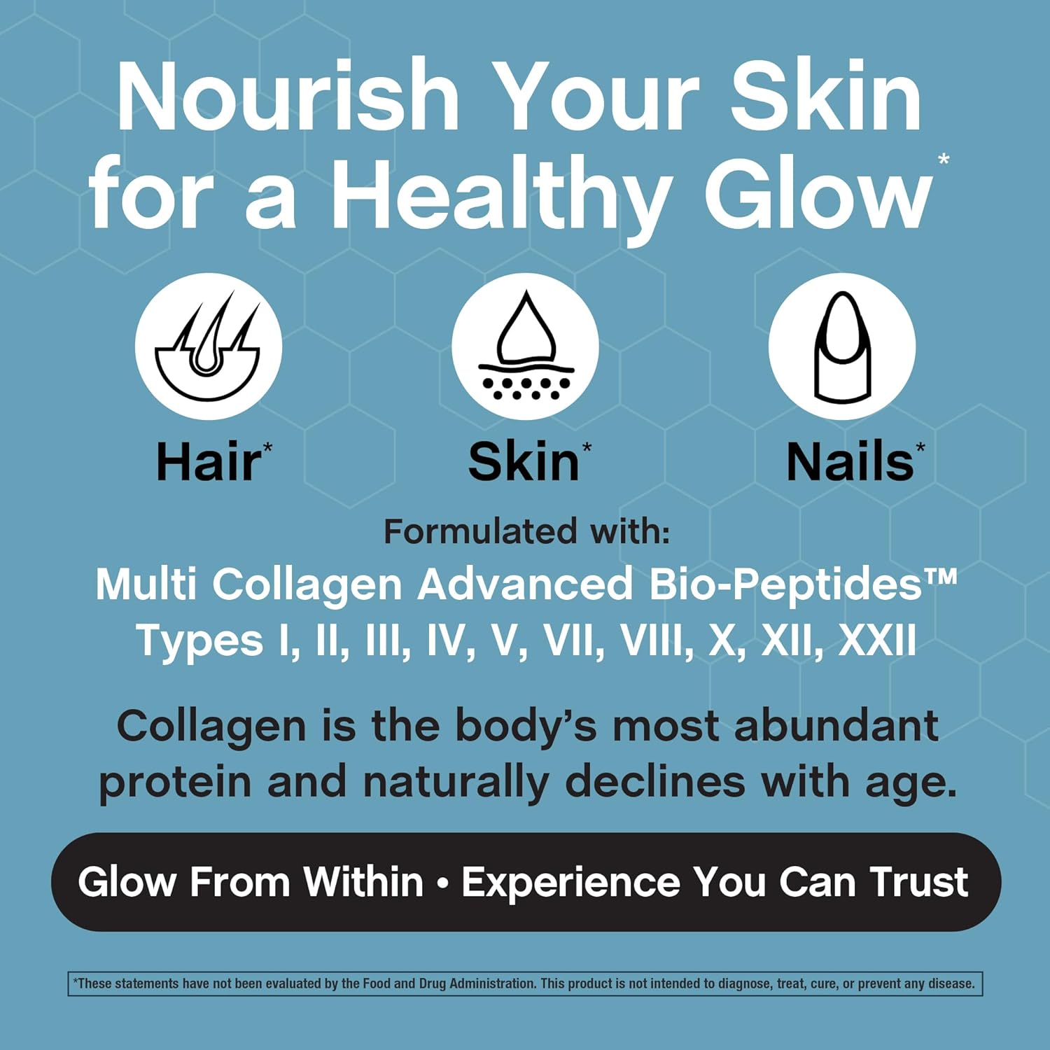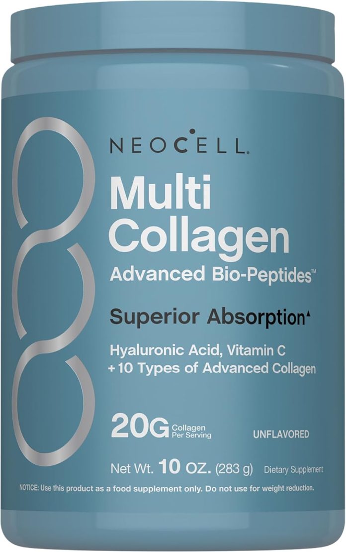 Advanced Multi Collagen: Our advanced collagen is packed with 10 types of collagen, but it doesn’t stop there. Each serving is elevated with the powerful addition of hyaluronic acid, and Vitamin C—an essential duo that works in harmony for extra support.