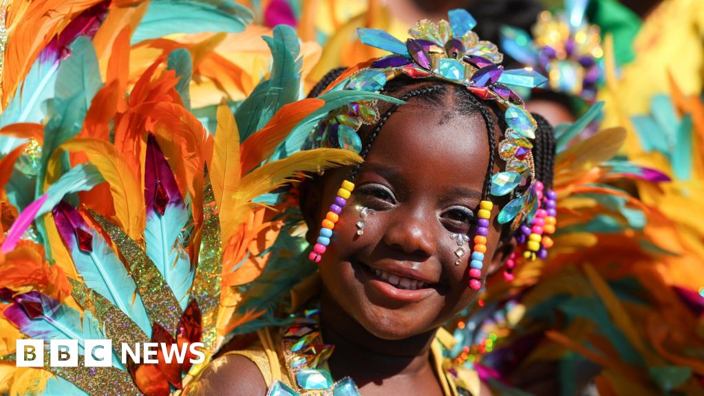 The day began with an explosion of colour as revellers met for J’ouvert at 06:00 BST ahead of the children’s parade, with the streets awash with bright paint and powder.