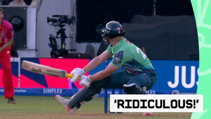 Watch as Jordan Cox reverse scoops Ajeet Singh Dale for a “ridiculous” six during the Oval Invincibles game agaisnt Welsh Fire.