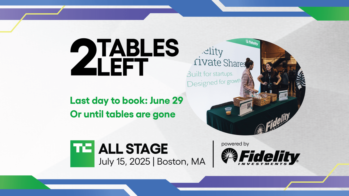 Yes, only two, and only until June 29. Tables for TC All Stage have been flying, and this is truly your last chance to claim your place in front of founders and investors across all stages.