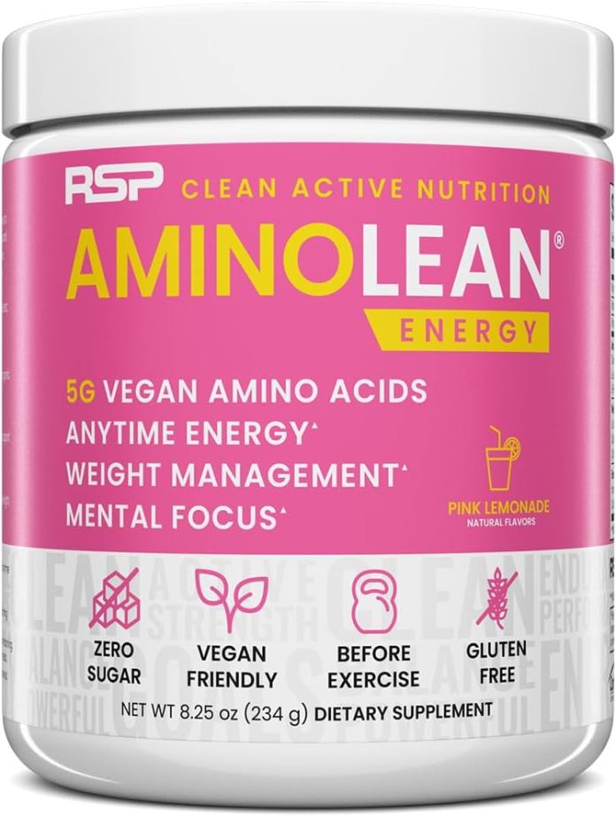 RSP NUTRITION AminoLean Pre Workout Powder, Amino Energy & Weight Management with Vegan BCAA Amino Acids, Natural Caffeine, Preworkout Boost for Men & Women, 30 Serv, Pink Lemonade…