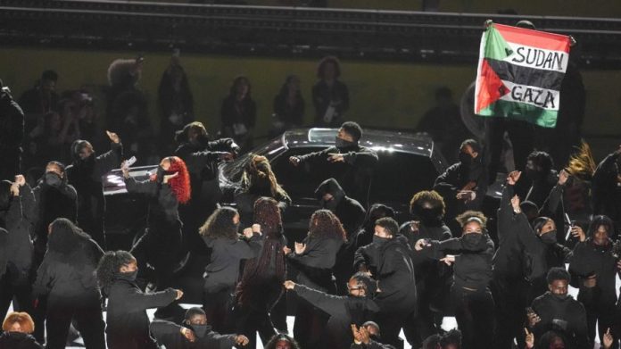 According to the police, Nantambu “deviated from his assigned role, retrieved a Sudanese flag bearing the message ‘Sudan and Free Gaza,’ and disrupted the halftime show by running across the field with a flag.”