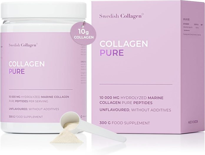 Swedish Collagen – Hydrolyzed Marine Collagen 10,000 mg Powder Supplement – Pack of 300 g, 30 Day Supply | Pure Peptide for Healthy Hair, Skin, Nails & Joints I 100% Natural & Gluten Free | Sugar-Free