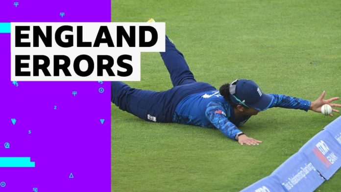 England make a number of fielding mistakes in the third one-day international – as India score 318 from their 50 overs at Chester-le-Street.