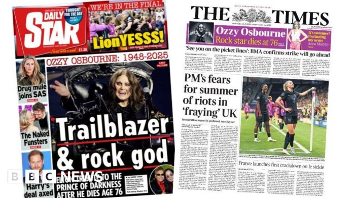 HomeGlobal GlobalUncategorized The Papers: 'RIP Ozzy' and 'LionYESSS!' By avrotusa July 23, 2025 0 50 FacebookTwitterPinterestWhatsApp Rock musician Ozzy Osbourne’s death and the Lionesses’ Euro 2025 semi-final victory leads Wednesday’s papers. Share FacebookTwitterPinterestWhatsApp Previous articleTrump announces Japan will face 15 percent tariff as part of trade agreementNext article‘Very motivated’ Marcus Smart says Lakers have ‘no ceiling’ avrotusahttps://todaysnewsportal.live Related Articles Technology Grok undressed the mother of one of Elon Musk’s kids — and now she’s suing Lifestyle Caitlyn Jenner on Kylie Jenner, Timothée Chalamet Romance Health Swedish Collagen Repair | 10,000 mg Hydrolyzed Marine Collagen Liquid Supplement – 500 ml, 20 Day Supply I Hyaluronic Acid, Biotin & Vitamin C... LEAVE A REPLY Cancel reply Comment: Please enter your comment! Name:* Please enter your name here Email:* You have entered an incorrect email address! Please enter your email address here Website: Save my name, email, and website in this browser for the next time I comment. Stay Connected0FansLike0FollowersFollow0SubscribersSubscribe Latest Articles Technology Grok undressed the mother of one of Elon Musk’s kids — and now she’s suing Lifestyle Caitlyn Jenner on Kylie Jenner, Timothée Chalamet Romance Health Swedish Collagen Repair | 10,000 mg Hydrolyzed Marine Collagen Liquid Supplement – 500 ml, 20 Day Supply I Hyaluronic Acid, Biotin & Vitamin C... Sports James Harden voices belief in Clippers; ‘blessed’ to be in L.A. Sports Arbeloa: Real Madrid Copa exit to 2nd-tier side ‘painful’ Load more