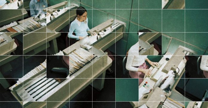 The Transorma multi-position letter sorting machine measured 13 feet high and was split across two levels. It carried mail on a conveyor belt from its lower level to a group of five postal workers at the upper level. The clerks would then use a keyboard to enter information about their destination. Based on the inputted information, the machine would then transport letters to different trays and drop them into chutes that brought them back to the lower level. But as the volume of mail increased in the years after World War II — going from 33 billion pieces of mail per year to 66.5 billion between 1943 and 1962 — the USPS needed a way to keep up.