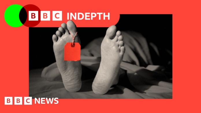 BBC A treated image of a human body placed on a medical gurney.BBC