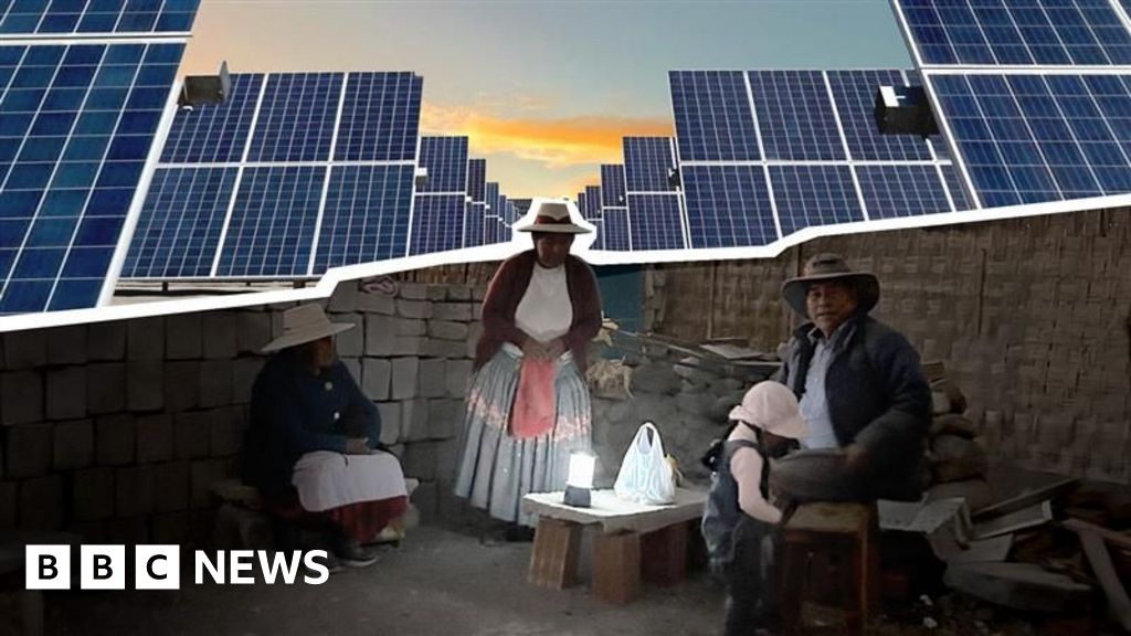 BBC A composite image featuring solar panels and residents of Pampa Clemesí in southern PeruBBC