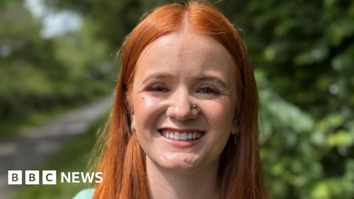 BBC Eve has long ginger hair and is smiling at the camera. She is outdoors, with a pathway and hedges blurred in the background. She is wearing a pale green top.BBC