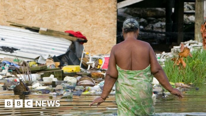 At just five metres (16ft) above sea level, the tiny Pacific archipelago is one of the most climate-threatened nations in the world.