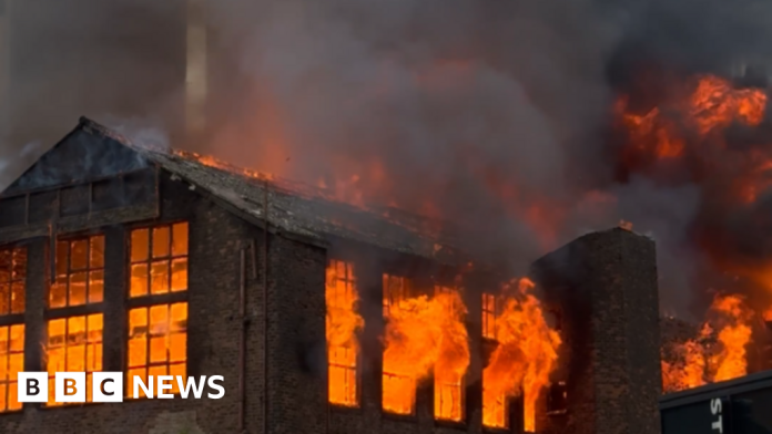 Embers from the blaze at Hotspur House reached 1 Cambridge Street, resulting in the evacuation of residents from the building, Greater Manchester Fire And Rescue Service (GMFRS) told the BBC at the scene.