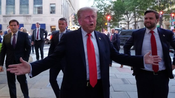 The president went to Joe’s Stone Crab, which is a couple blocks away from the White House, and was joined by Vice President J.D. Vance, Defense Secretary Pete Hegseth and Secretary of State Marco Rubio.