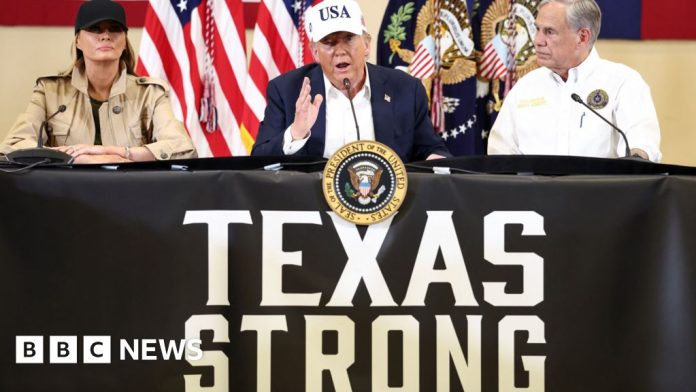US President Donald Trump reassured residents of Kerrville, Texas, that the government would help rebuild after floods hit the central part of the state last week, killing 120 people.