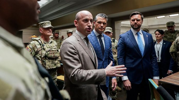Days prior, Miller joined Vice President Vance and Defense Secretary Pete Hegseth at Union Station to meet with National Guard troops, during which the deputy chief of staff railed against what he called “stupid white hippies” who were protesting the federal law enforcement in the nation’s capital.