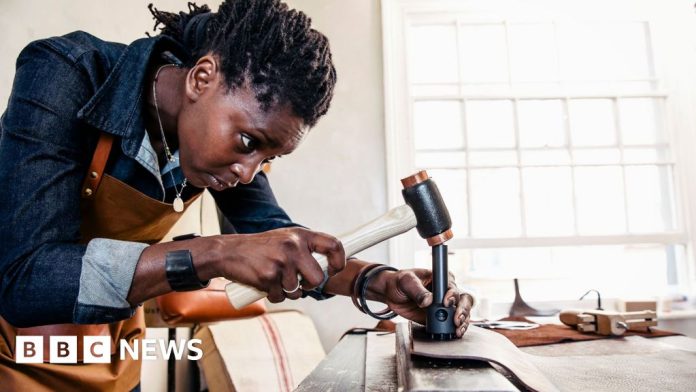 Getty Images Stock photo shows a maker hammering away at a piece of leather in a workshop.Getty Images