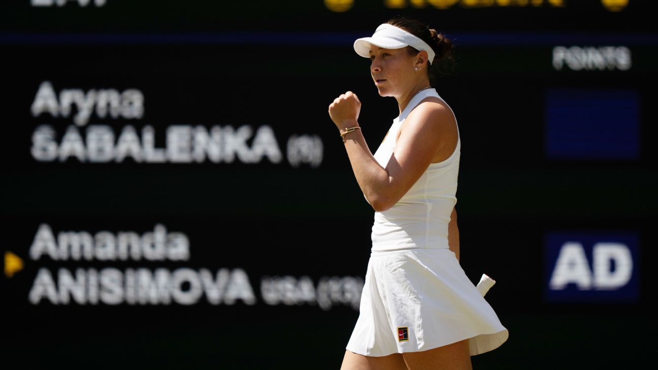 “This doesn’t feel real right now, honestly,” Anisimova then said to the crowd. “Aryna’s such a tough competitor and I was absolutely dying out there. And yeah, I don’t know how I pulled it out. I mean, she’s such an incredible competitor and she’s an inspiration to me and I’m sure so many other people. We’ve had so many tough battles, and to come out on top today and be in the final of Wimbledon is just so incredibly special.”