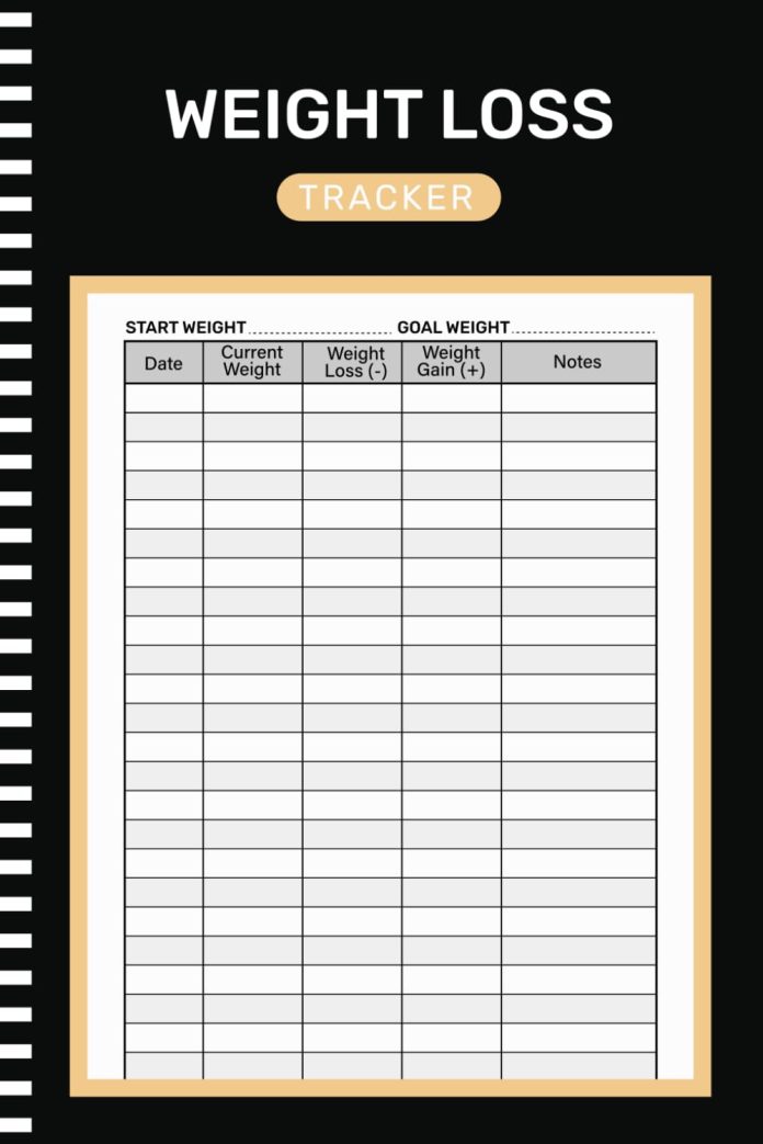 Book Include:DateStart WeightGoal WeightCurrent WeightWeight Loss ( – )Weight Gain ( + )Notes