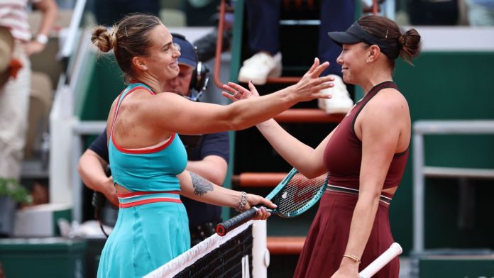 “I definitely think this surface suits her game really well,” Sabalenka said Tuesday. “That’s why she’s playing so well so far. She’s serving well. She’s hitting quite clean and heavy shots.”